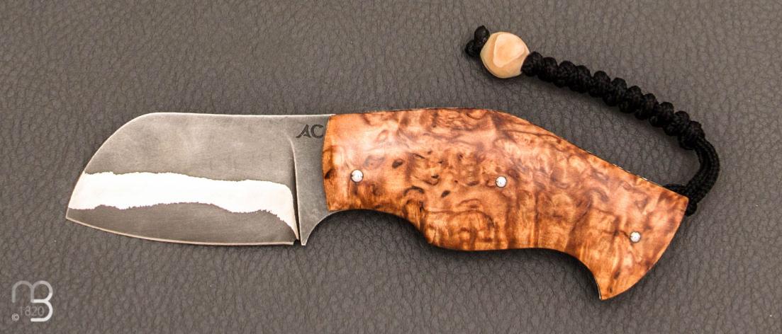 •  Couteau " DRAC " par Alain Conesa - Acier & Cuir - Bouleau madré stabilisé
