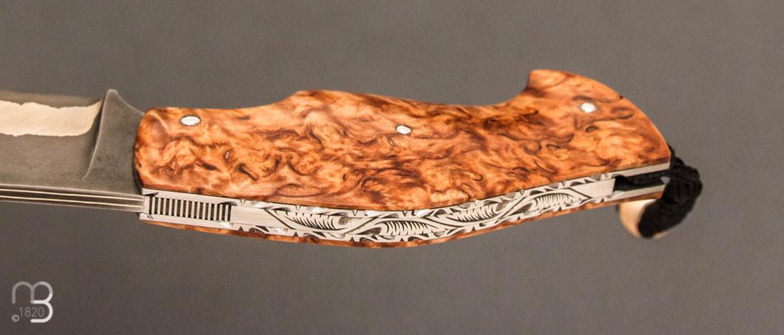Couteau " DRAC " par Alain Conesa - Acier & Cuir - Bouleau madré stabilisé