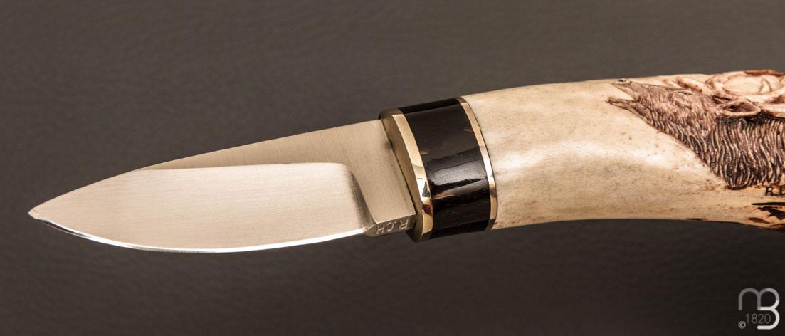Superbe couteau de collection droit réalisé par le coutelier Suisse Charles Roulin