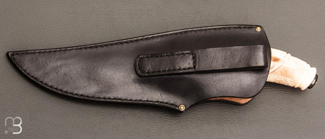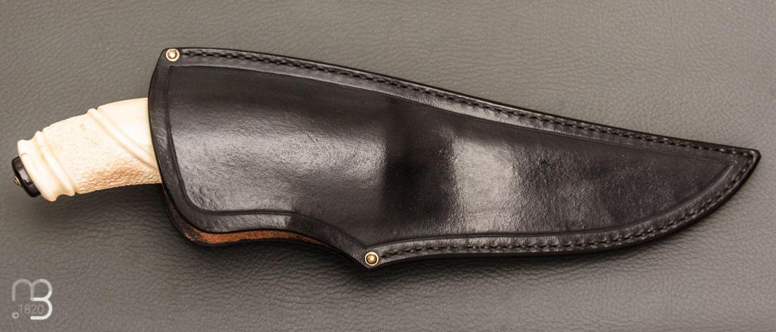 Ce couteau de Benoît Maguin est livré avec un étui en cuir réalisé sur mesure pour ce couteau