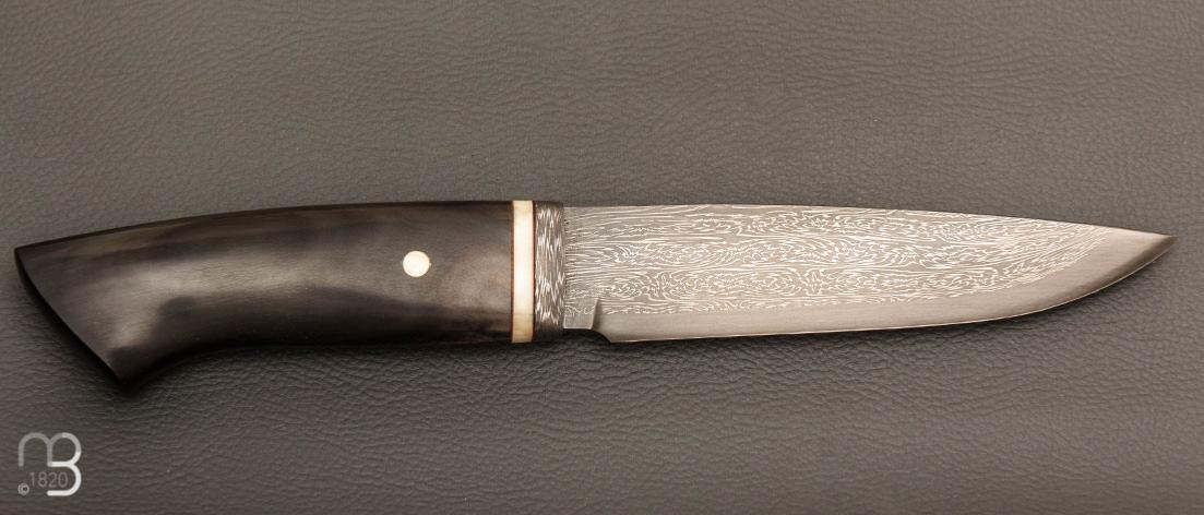 Couteau Droit de collection par Jean Paul Sire - Corne et Damas multi-barreaux