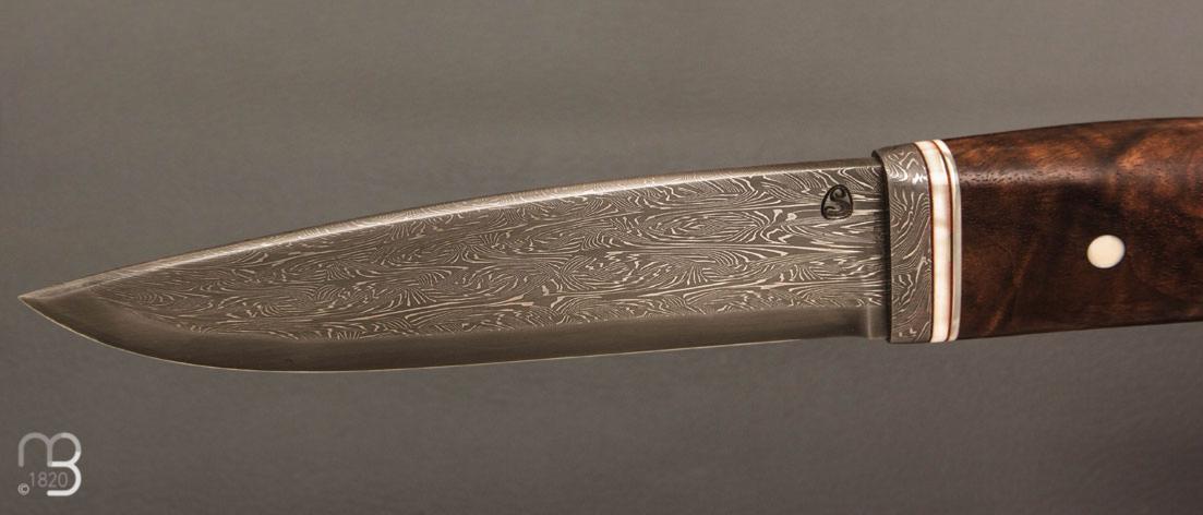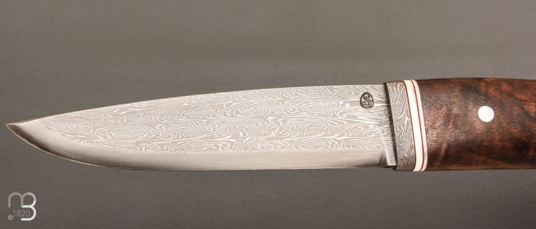 •    Couteau Droit noyer et Damas multi-barreaux par Jean Paul Sire