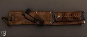 Ce couteau Wildsteer KRS est livré avec un étui nylon compatible MOLLE et une pierre à feu.