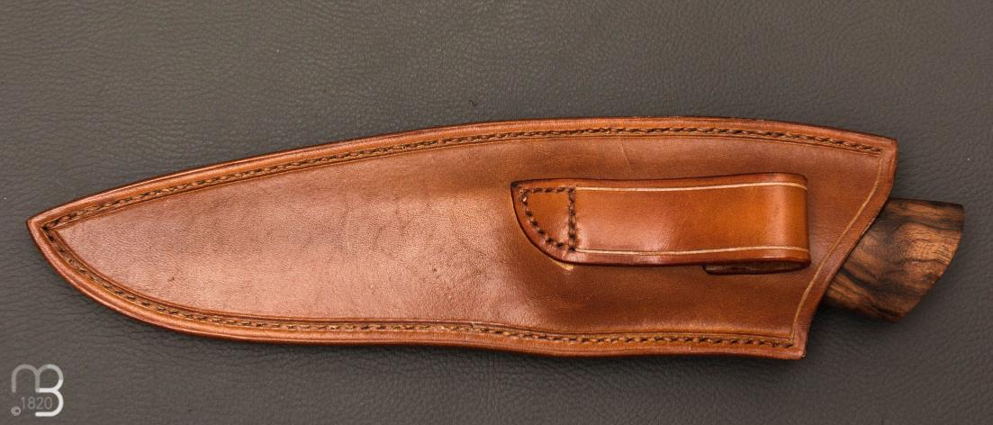Un très beau couteau droit forgé de la main de Nicolas Mestrallet, avec lame en acier carbone damas et manche en noyer