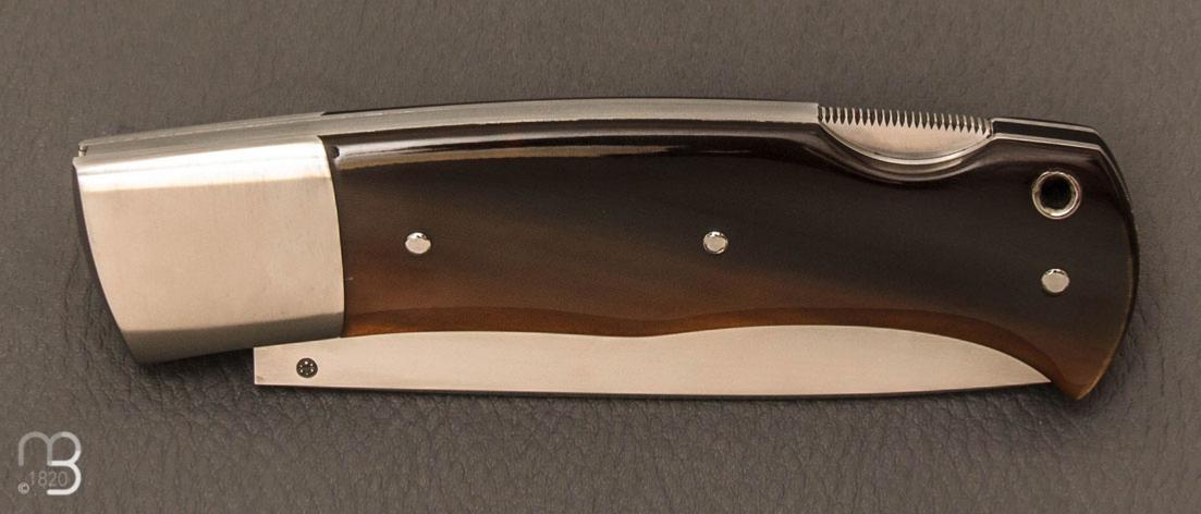 Couteau  "  Drop  "  custom lock-back par Raphaël Durand - Corne de buffle et lame en RWL-34