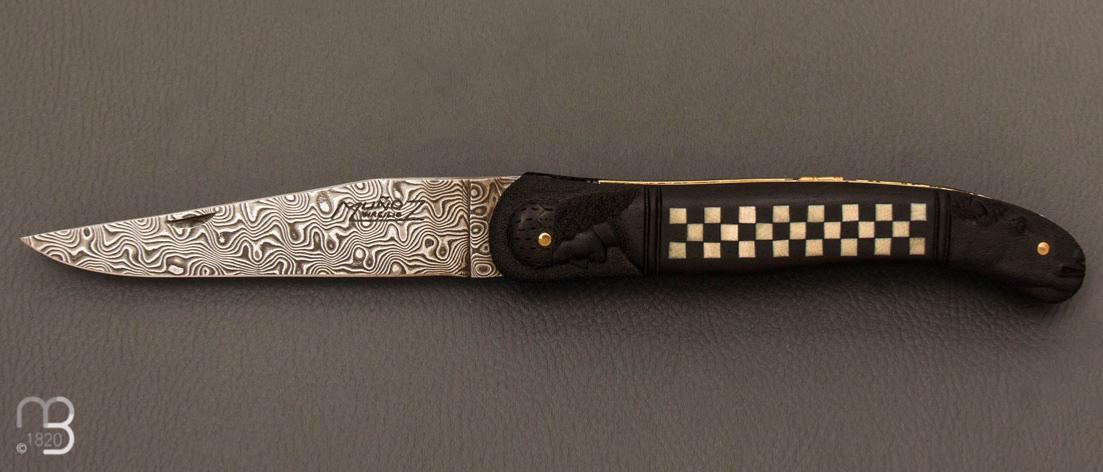 •  Couteau " Échiquier " Laguiole ébène et damas par Virgilio Munoz