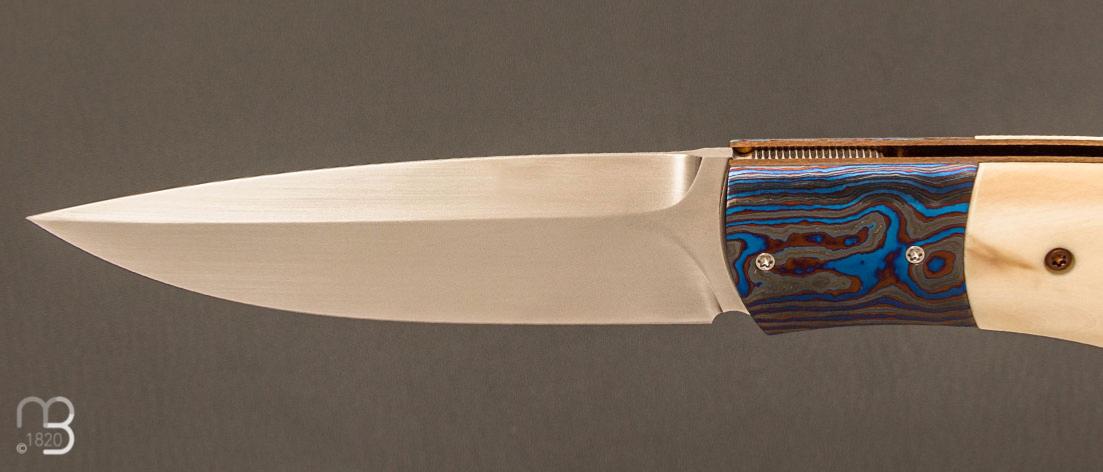 •  Couteau " Eryx " custom pliant par Milan Mozolic - Ivoire de phacochère et lame en RWL34