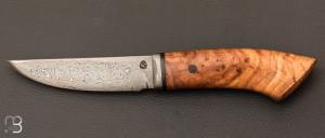 Un couteau format compact au damas fin et complexe réalisé par Jean-Paul Sire