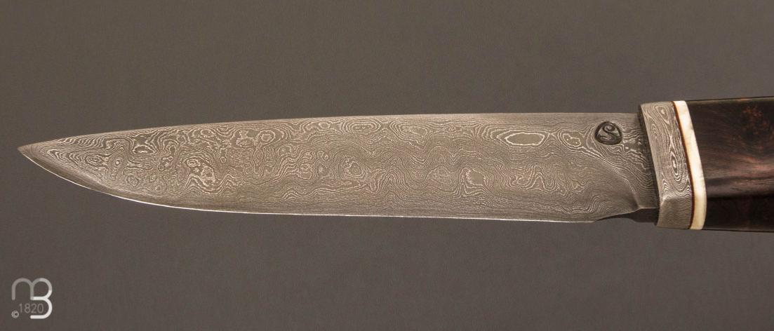 Couteau fixe de collection en Ebène du Mozambique et Damas de Jean Paul Sire
