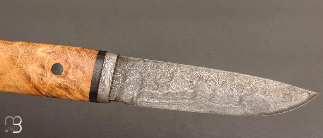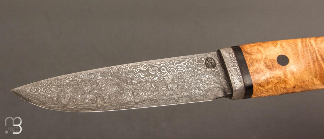 •    Couteau fixe loupe de robinier et Lame forgée acier damas par Jean Paul Sire