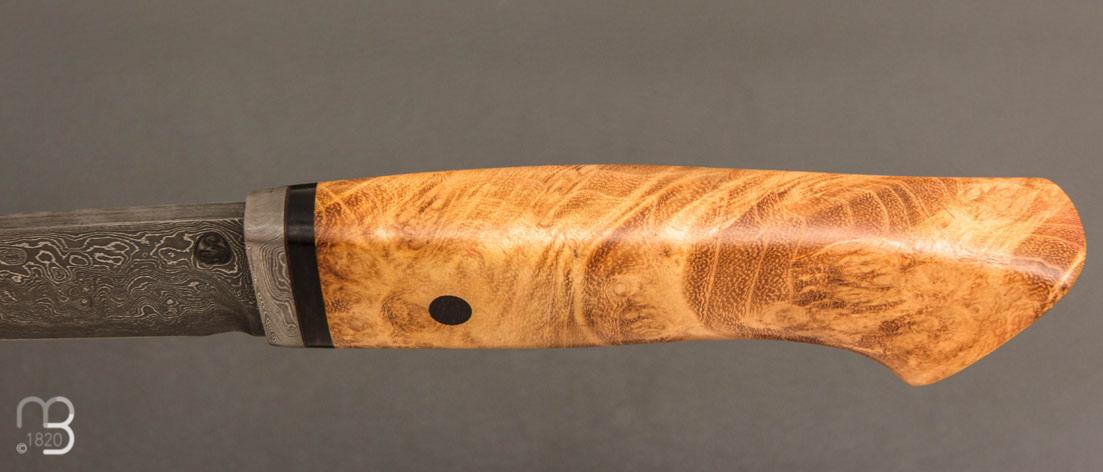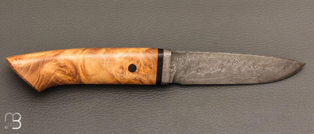 Couteau fixe loupe de robinier et Lame forgée acier damas par Jean Paul Sire