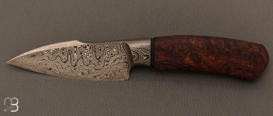 •  Couteau fixe semi intégral par David Lespect -  bois de fer et damas