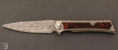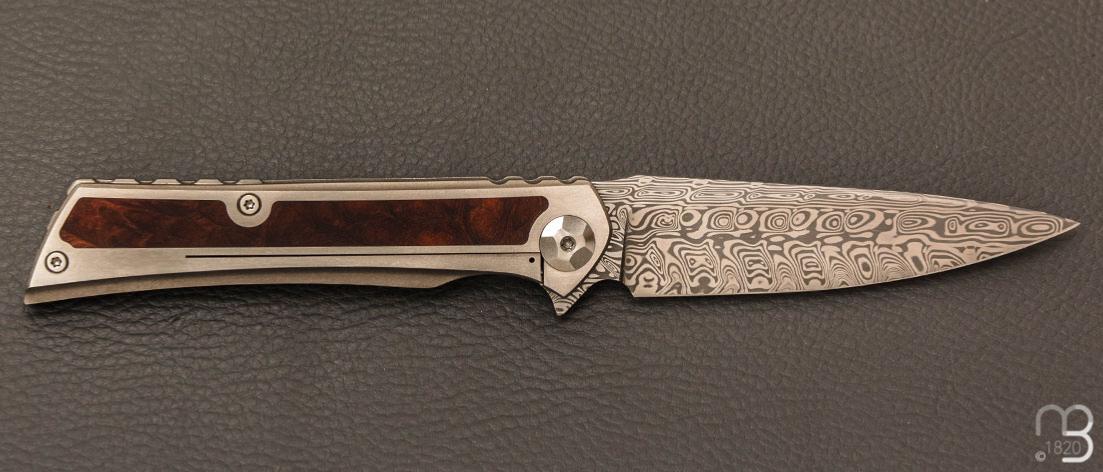 Couteau " Frame-lock  " custom de Lionel Lalague - Bois de fer et lame Damasteel®
