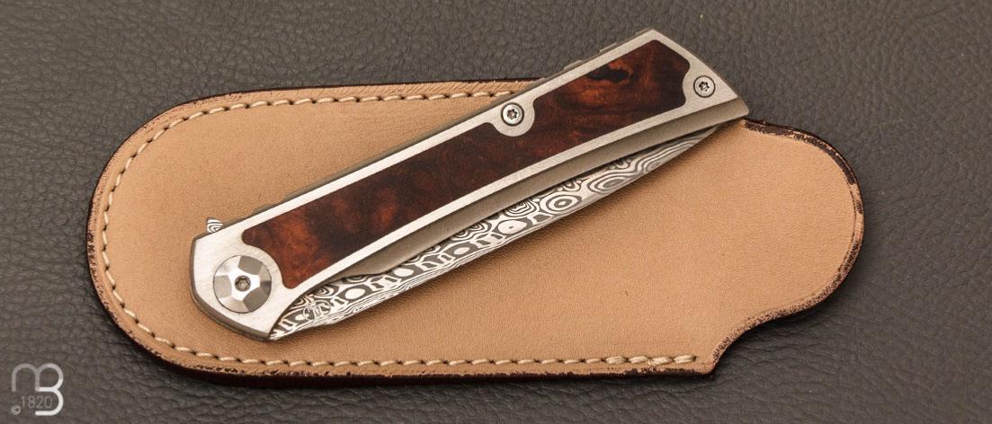 Couteau " Frame-lock " custom de Lionel Lalague - Bois de fer et lame Damasteel®