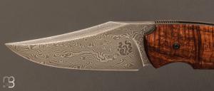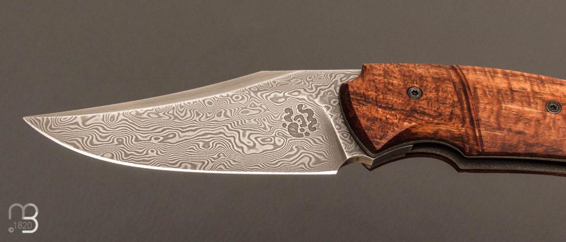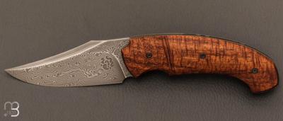 Couteau " Front-flipper custom " par Fabrice Delbart - Forge Celtique - Koa et lame damas inoxydable