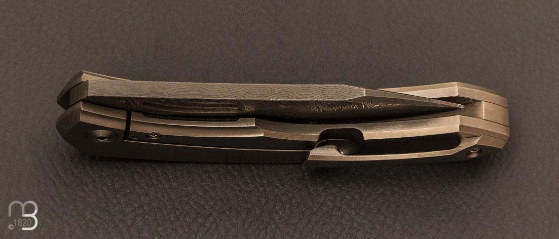 Couteau " Glouton " custom par Emmanuel Lebrun - Titane et damas de Chad Nichols
