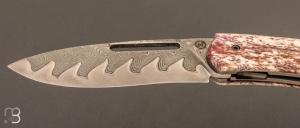 Couteau " Gyr " front flipper custom par Tim Bernard - Oosik et damas by Futuron forge
