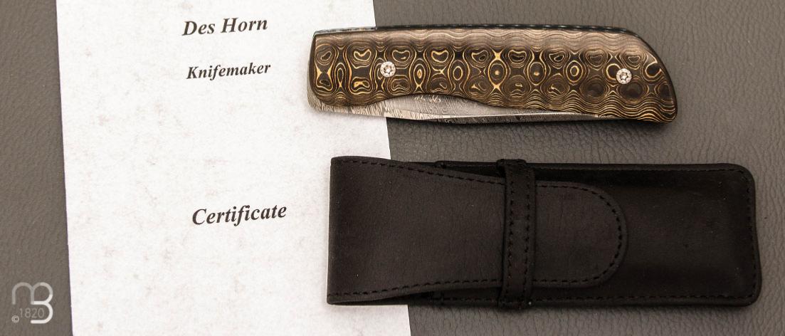 Couteau " Imvubu " par Des Horn - Fatcarbon "Unigold" et lame en damasteel