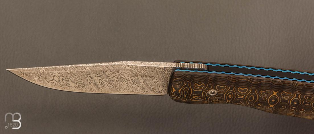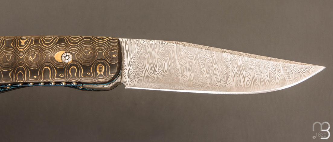 •    Couteau " Imvubu " par Des Horn - Fatcarbon "Unigold" et lame en damasteel