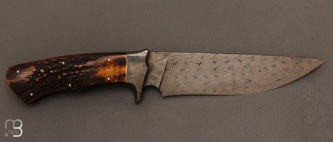 Couteau " Integral Damascus " de Claudio Sobral CAS Knives - Stag et Damas