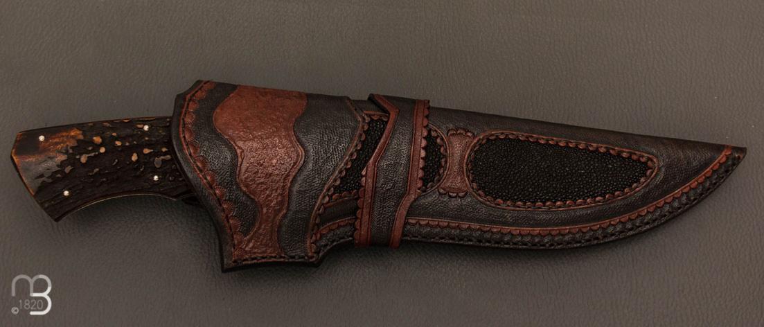 Ce couteau de Claudio et Ariel Sobral est livré avec un étui en cuir brun