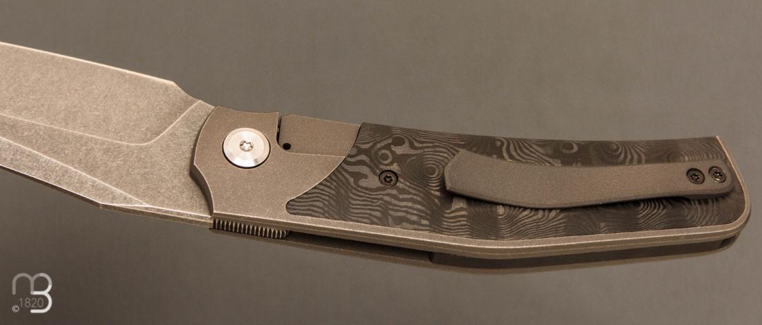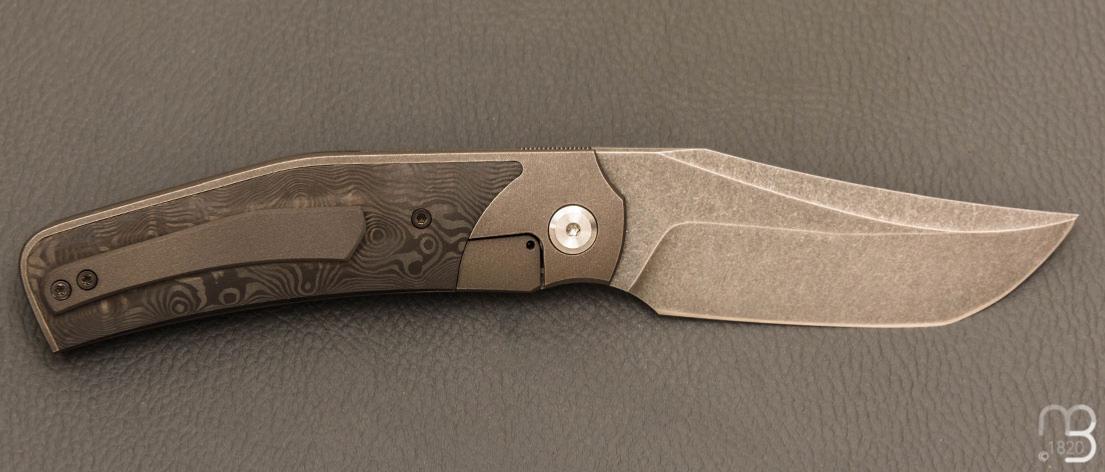 Couteau " Inter-Frame Bolster-lock " custom fibre de carbone et titane par Guy Poggetti - Acier Elmax