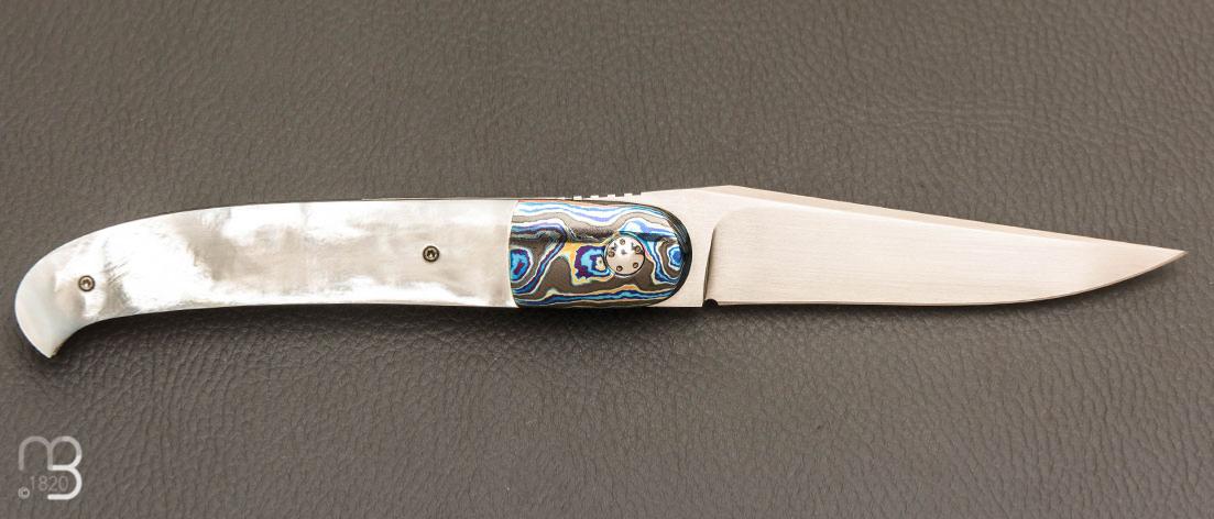 Couteau  "  Interprétation Laguiole " custom de Stéphane Sagric - Nacre et RWL34