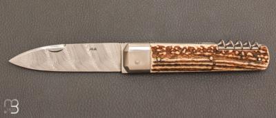 Couteau " Issard 13cm " bois de cerf et Damasteel® de Robert Beillonnet