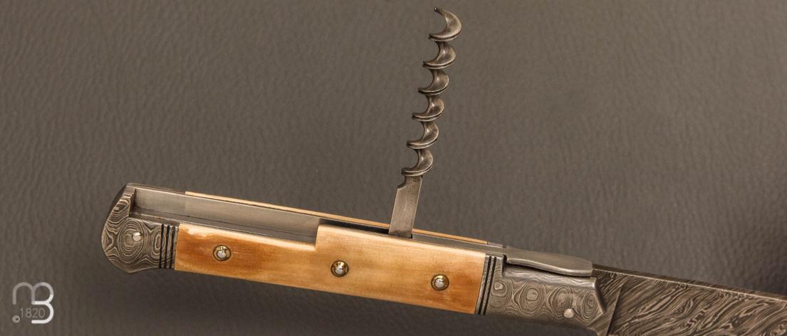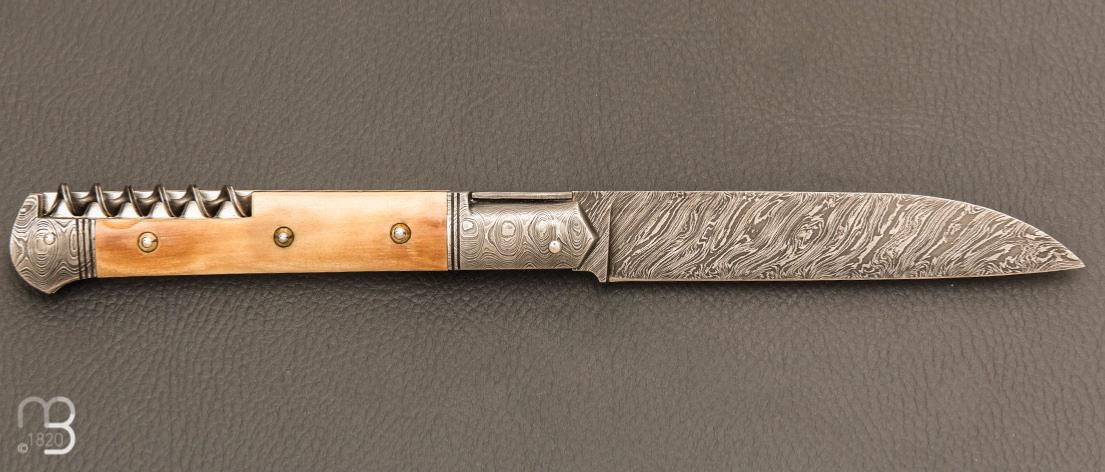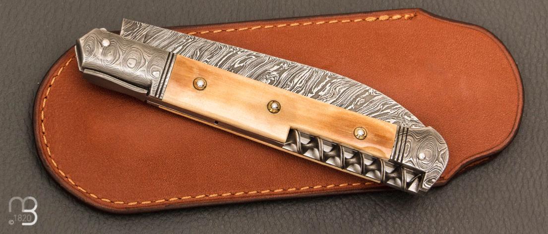 Couteau " Issoire 2 pièces " custom de Jérôme Bellon - Ivoire de mammouth et lame damas