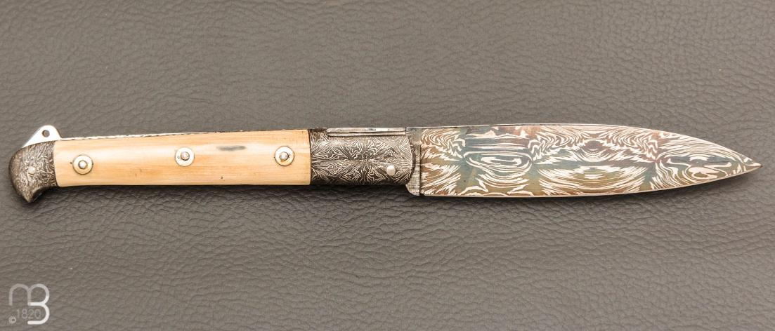 Couteau " Issoire " de Jean Pierre Veysseyre - Ivoire de mammouth et damas