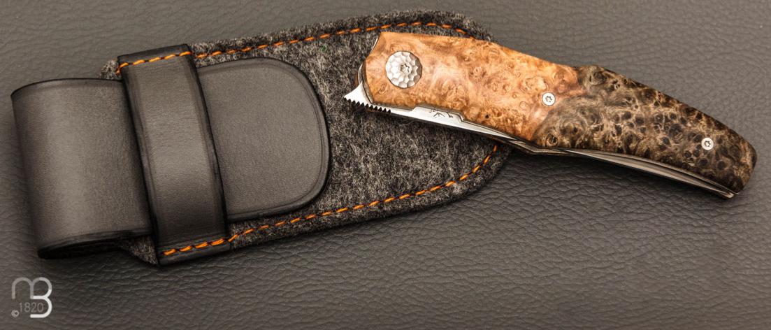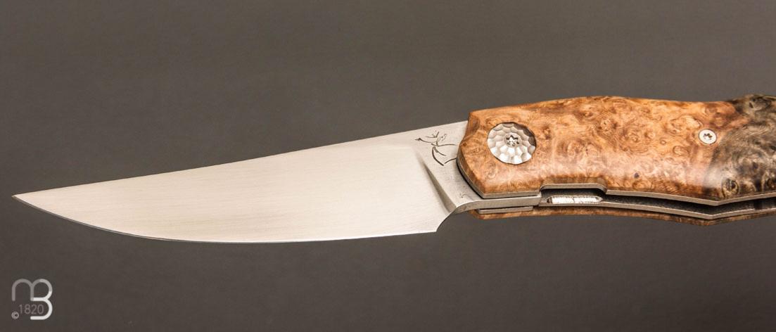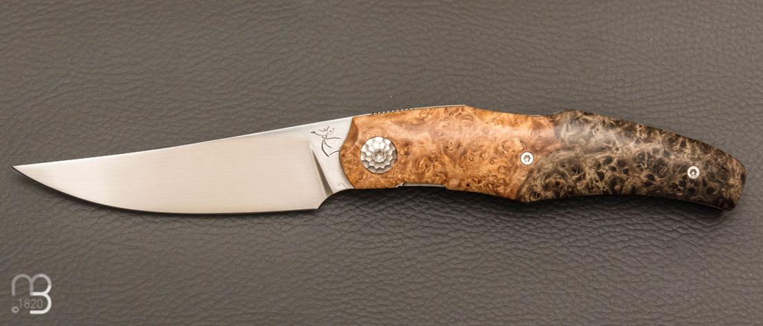 Couteau " Karnage " custom de Michel Grini - Loupe d'amboine et lame en RWL34