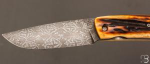 Couteau " Kork " custom de Michel Grini - Amber stag et lame damas de Sylvain Dixneuf