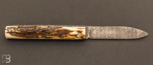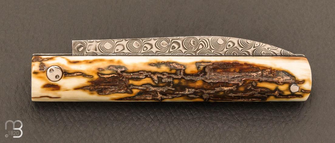 Couteau  "  L'Olonnois " de L'atelier du capitaine - Croute d'Ivoire de mammouth et damas