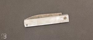 Couteau  "  L'Olonnois " de L'atelier du capitaine - Nacre blanche et damas