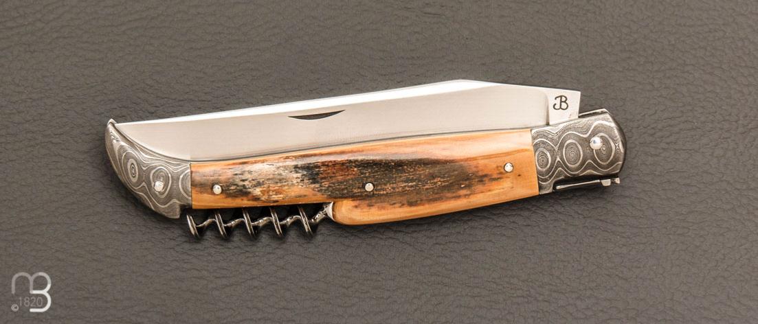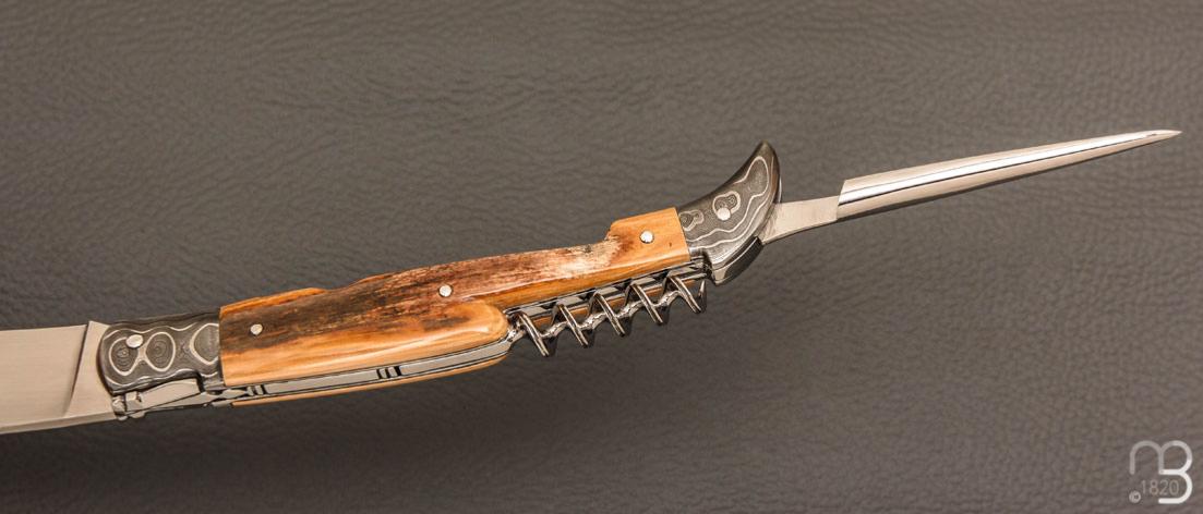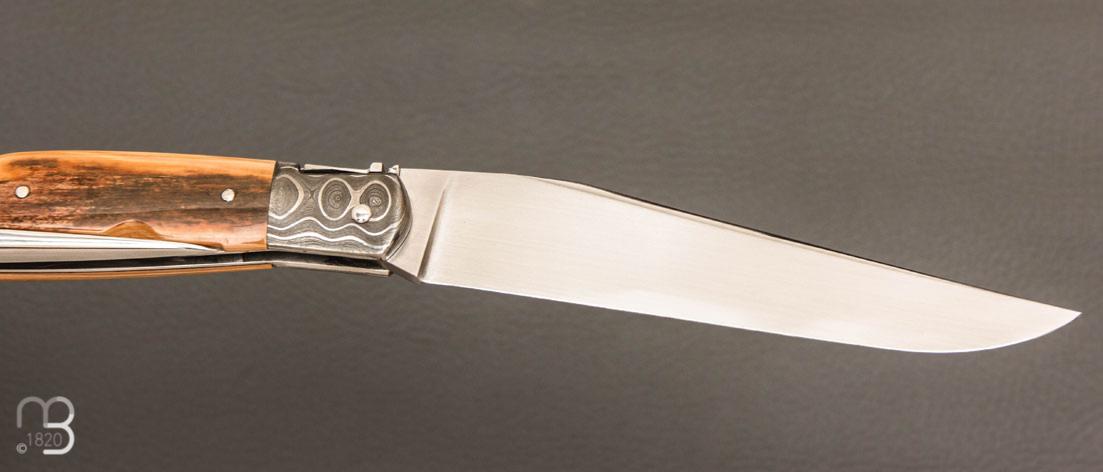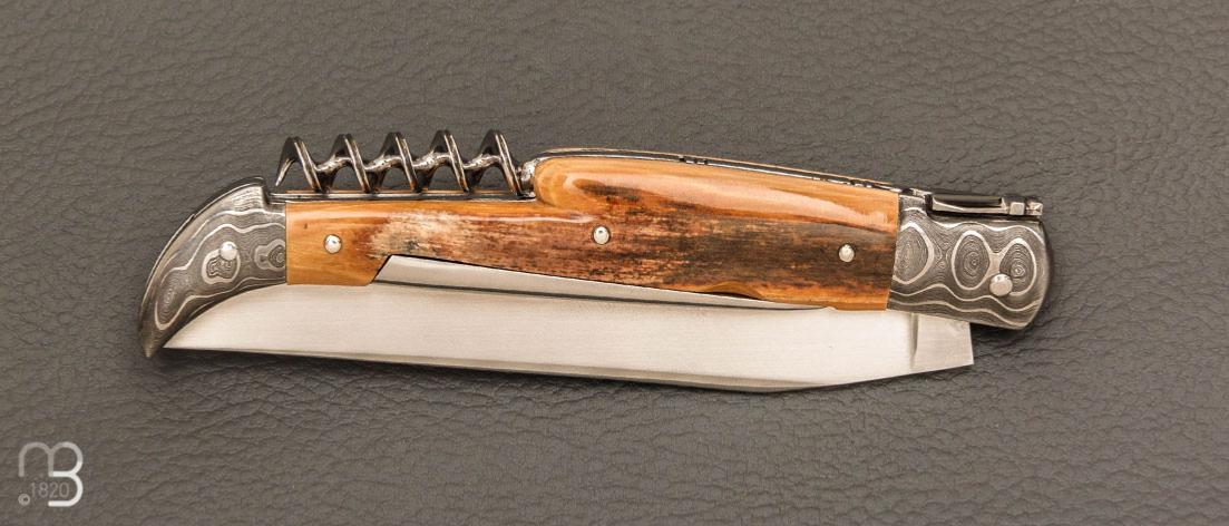 • Couteau " Laguiole 12CM 3 pièces  " custom de Jérôme Bellon - Ivoire de mammouth / damas et RWL34