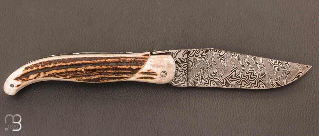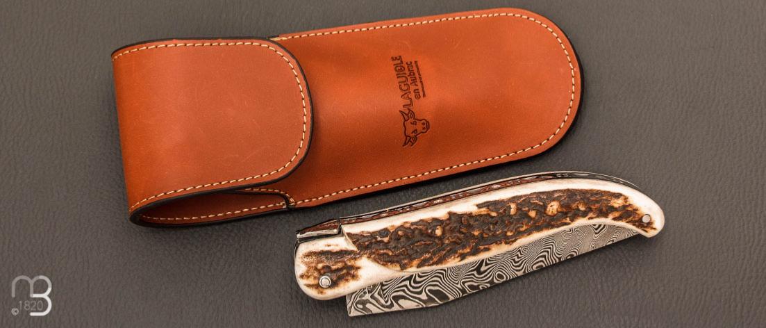Couteau " Laguiole Chasse " par Laguiole en Aubrac - Bois de cerf et lame damas