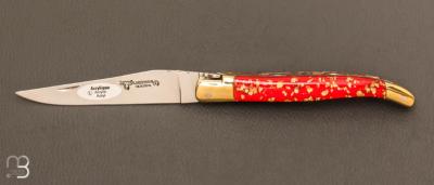Couteau Laguiole en Aubrac 12cm - Acrylique pailleté or rouge