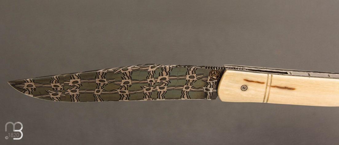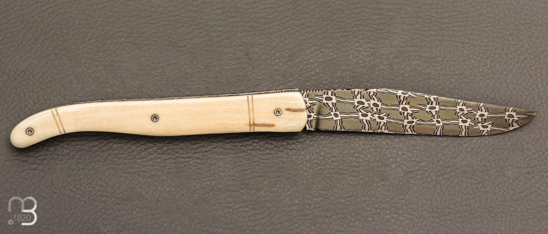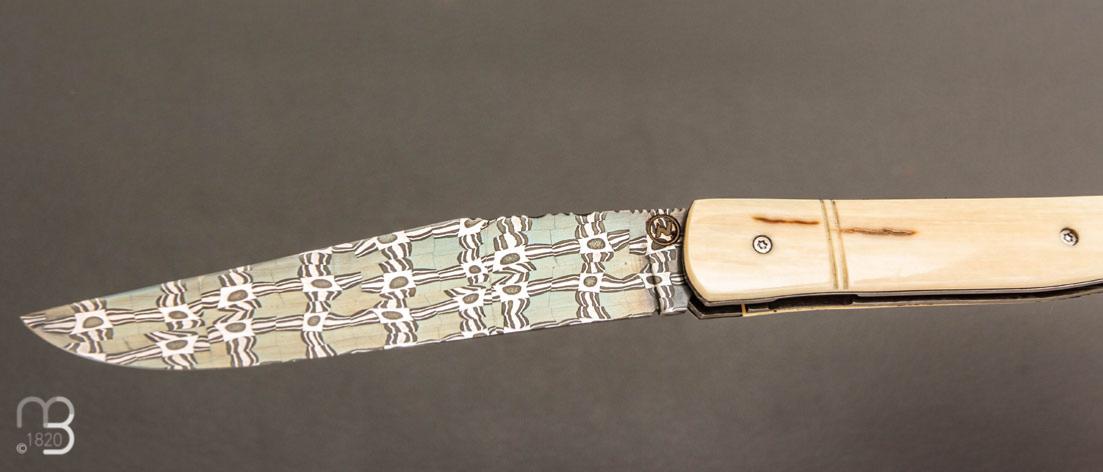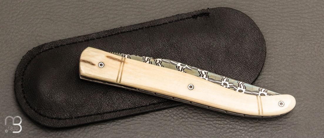 Couteau " Laguiole " par Tim Bernard - Ivoire de mammouth - Lame damas mosaïque