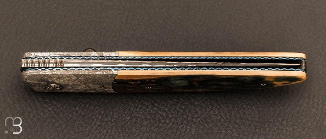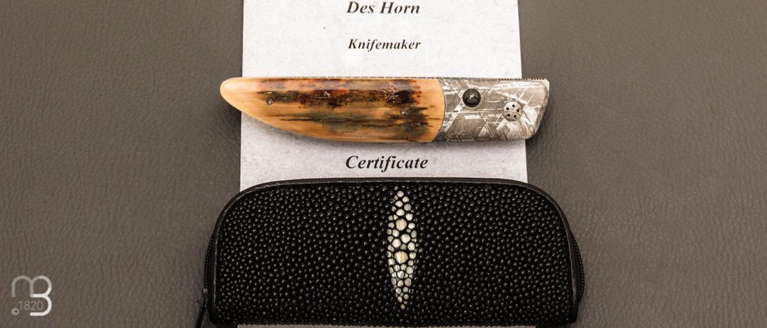 Ce couteau de Des Horn est doté de superbe plaquettes en ivoire de mammouth avec des mitres en météorite "Gibeon"