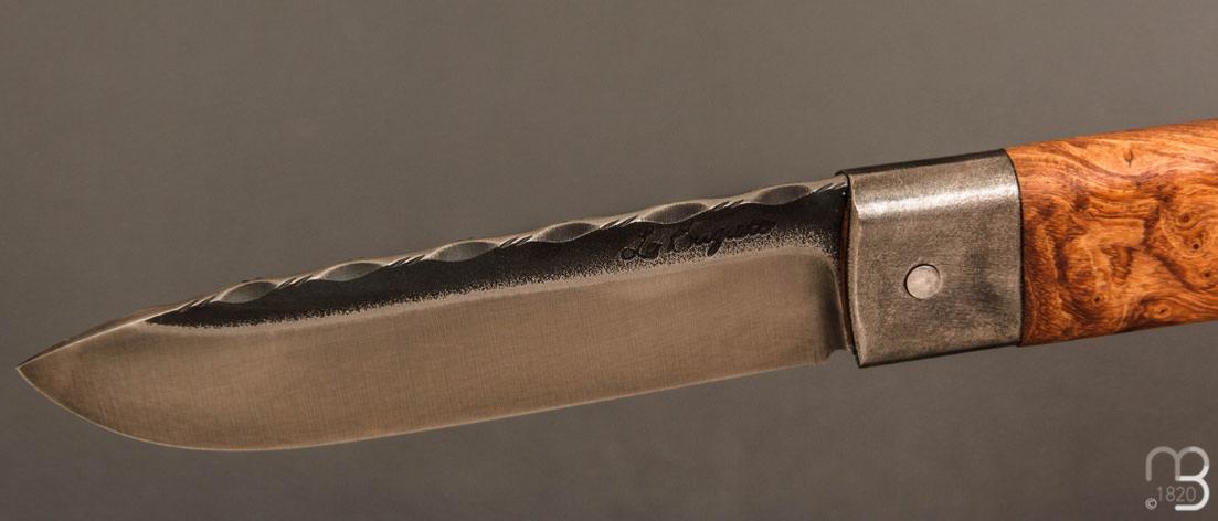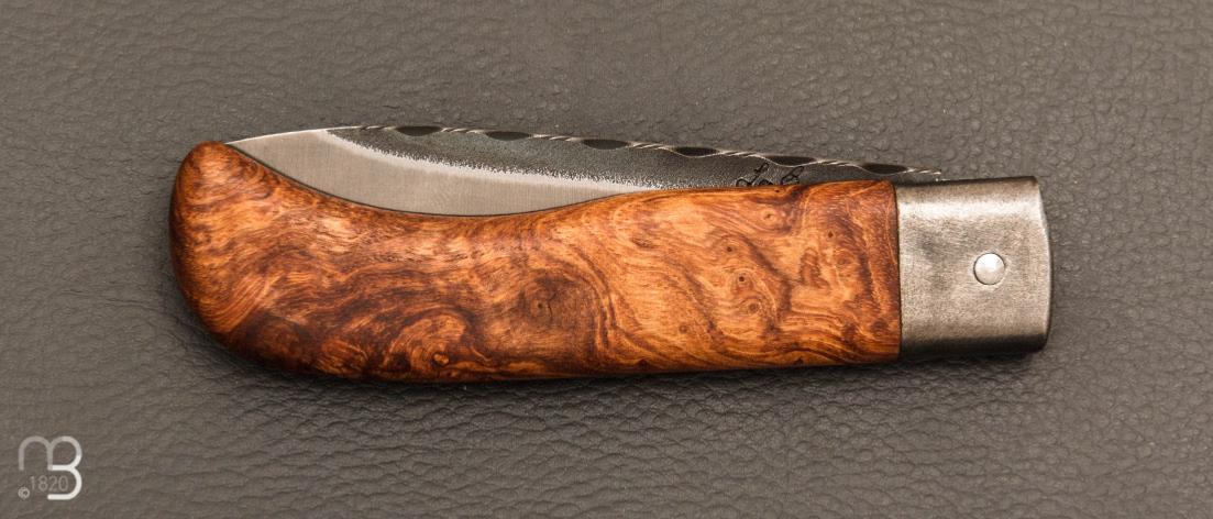 •  Couteau " Le Bugiste " Frêne par Frédéric Maschio - Lame guillochée