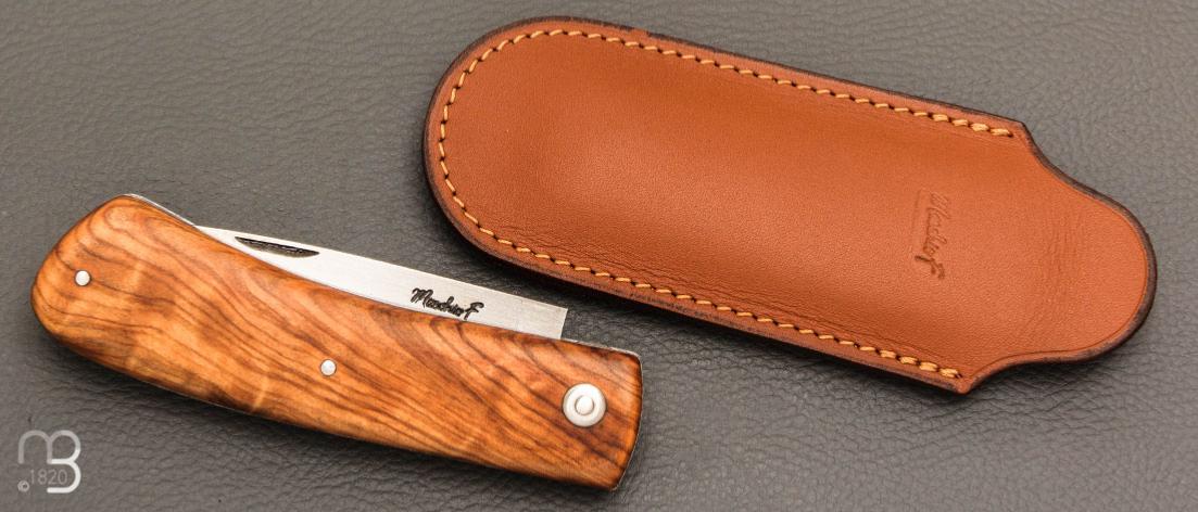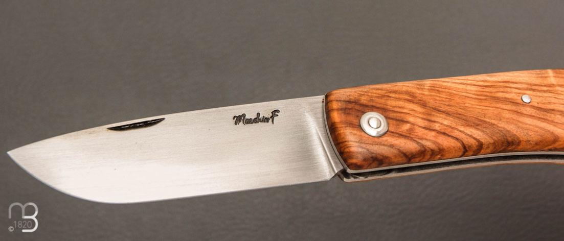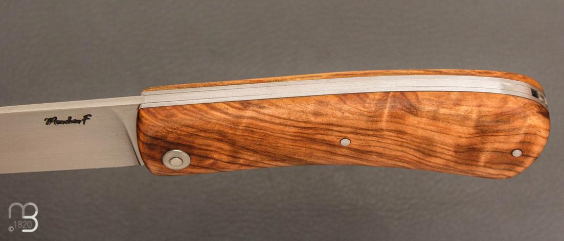 Couteau " Le Dodu " à cran plat par Frédéric Maschio - Olivier et acier 80CrV2