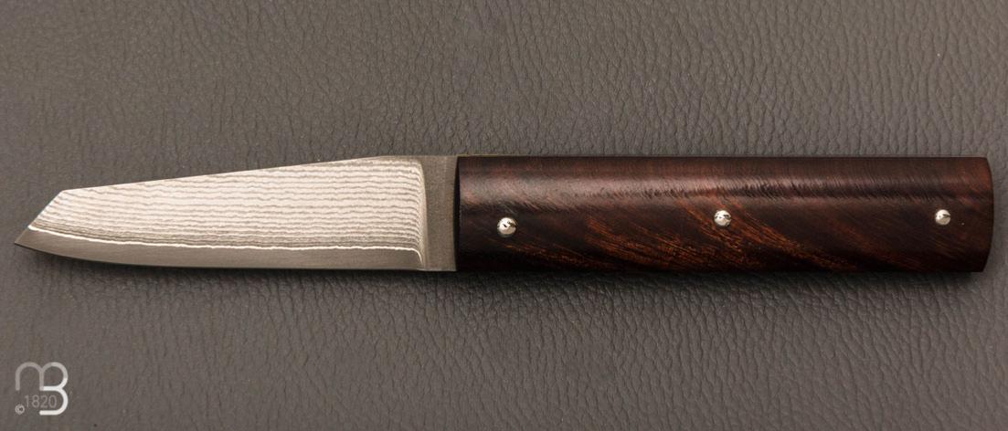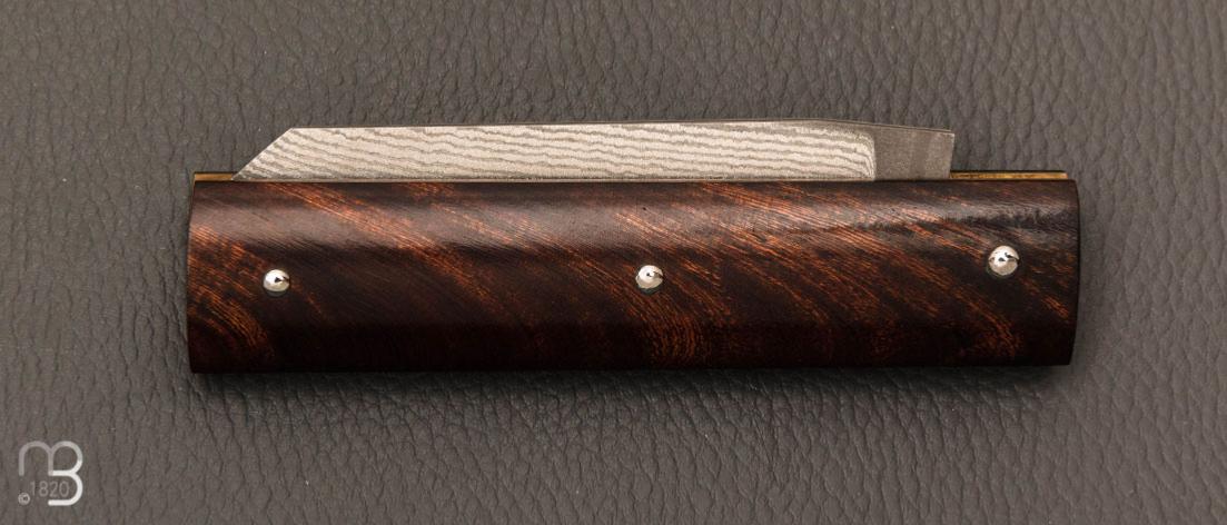 Couteau pliant de poche en bois de fer avec une lame en acier VG10 Suminagashi par Nicolas Couderc M.O.F en coutellerie