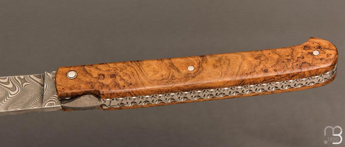 Couteau " le Sauveterre " régional pliant - Loupe de teck et lame damas