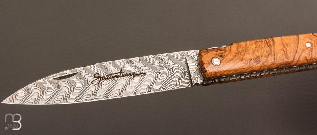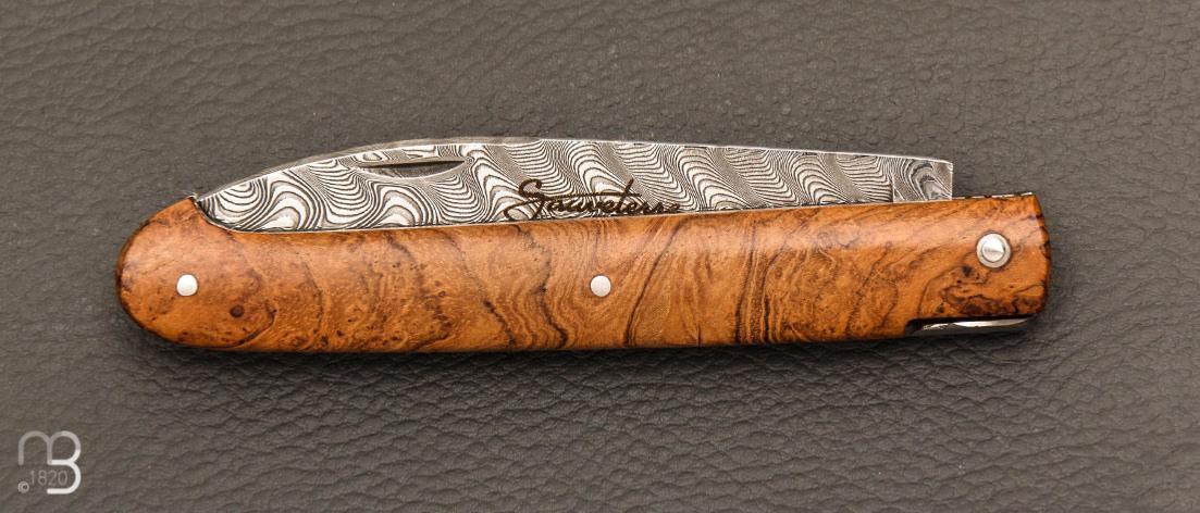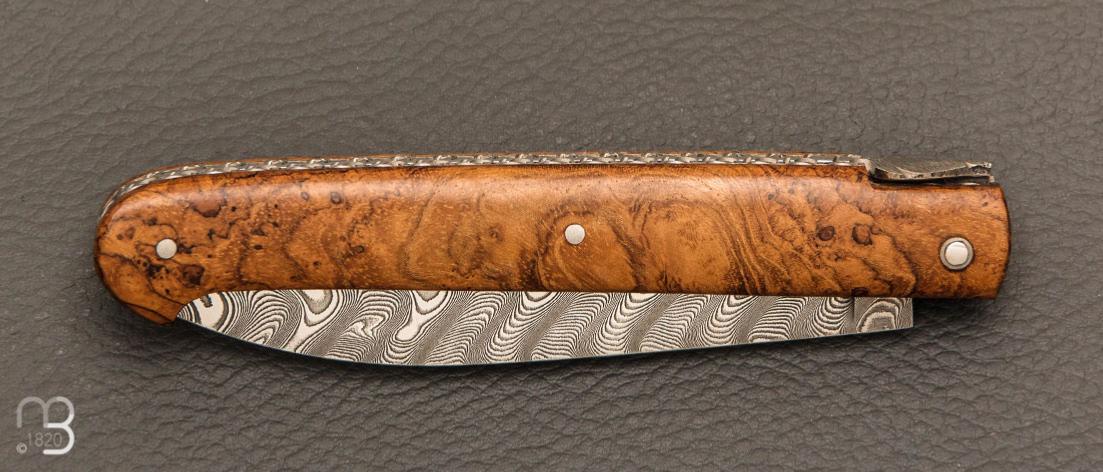 Couteau  " le  Sauveterre " régional pliant - Loupe de teck et lame damas