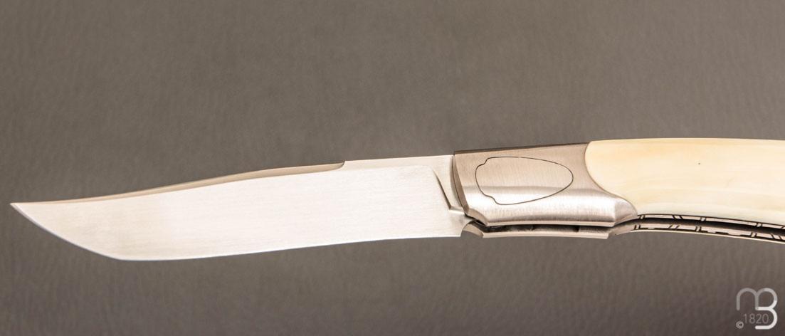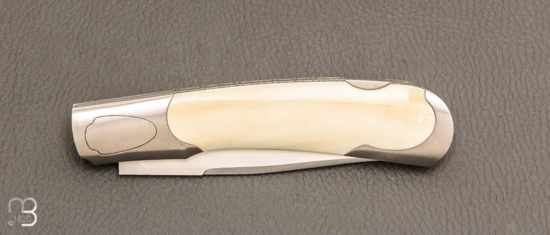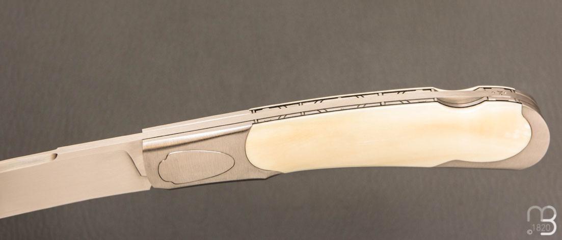 •  Couteau " Legend LockBack " pliant artisanal de Cyril Kalisz - Ivoire de phacochère et RWL34