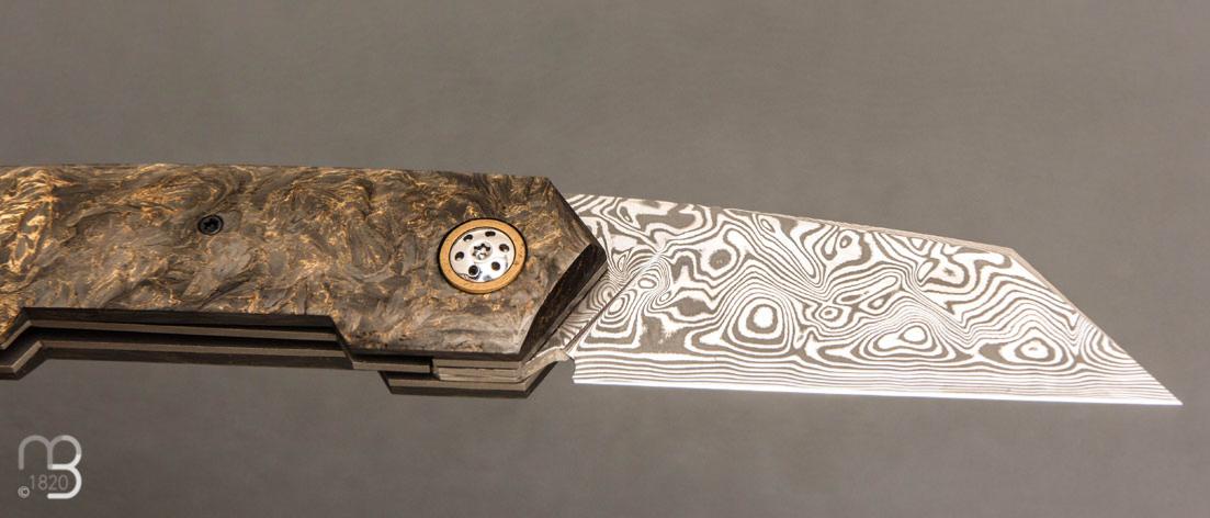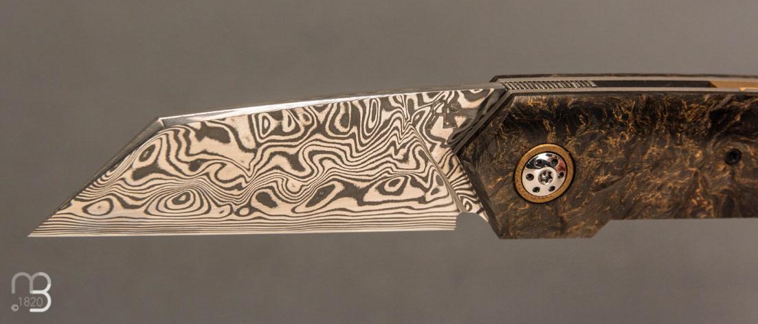 Couteau " Liner-Lock " custom par Romain Lopez - Fatcarbon et Damasteel®