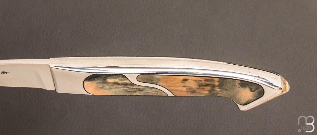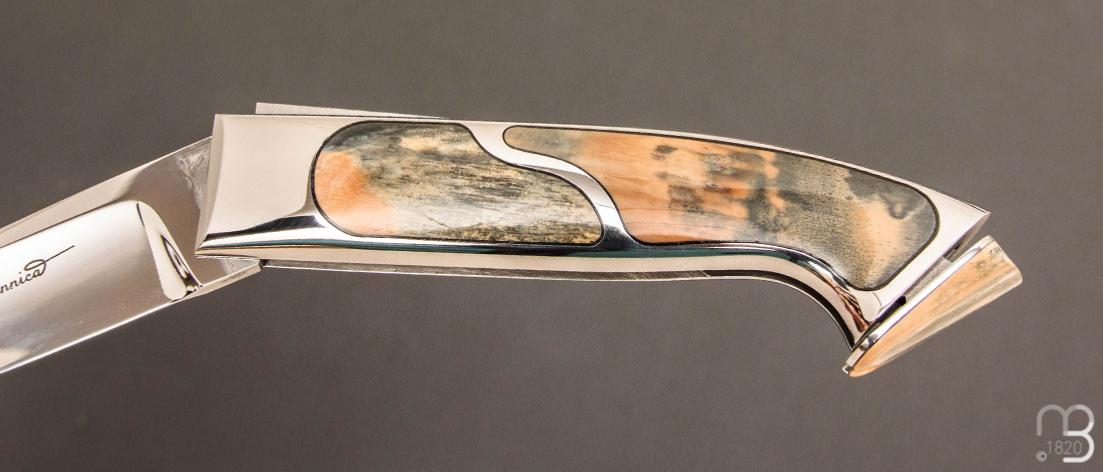 Manche en acier inoxydable 416 avec inserts "interframe" en ivoire de mammouth.