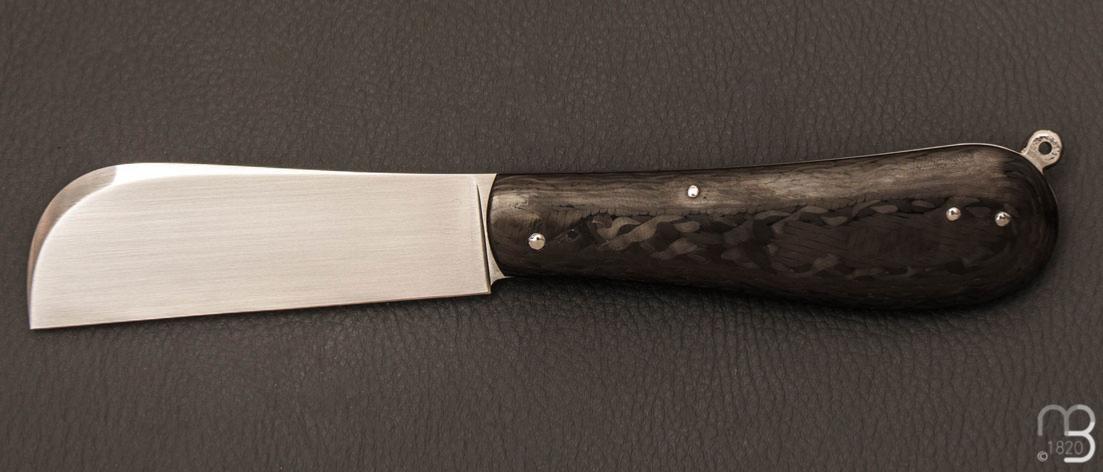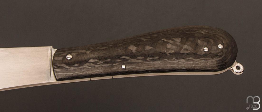 Couteau " London Dodu " pliant fait main par Bastien Toubhans - Atelier Beau Merle - Fibre de carbone nautique et lame en RWL34