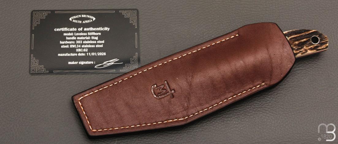 Couteau " Loveless Stiffhorn " Design par le coutelier Sud Africain Shaun Bruwer, véritable pièce d'exception