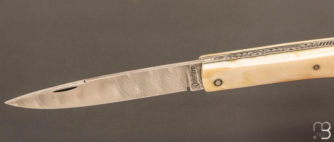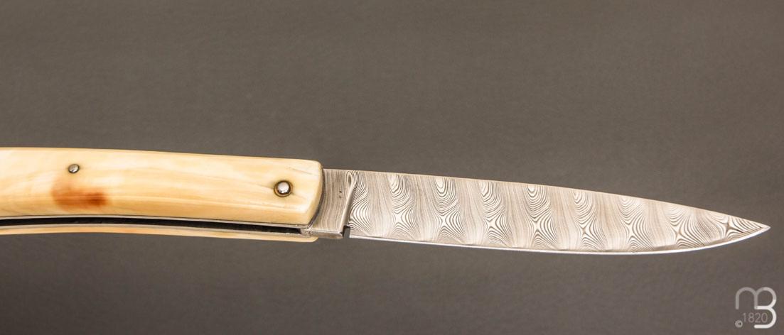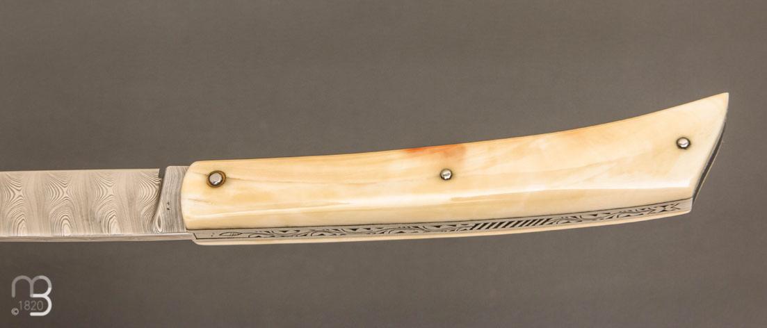 Couteau " Mandrin " de collection par Philippe Voissière - Ivoire de phacochère et lame Damasteel®